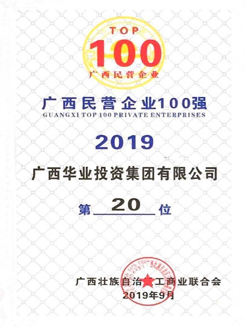 2019年廣西民營企業(yè)100強(qiáng)榜第20名